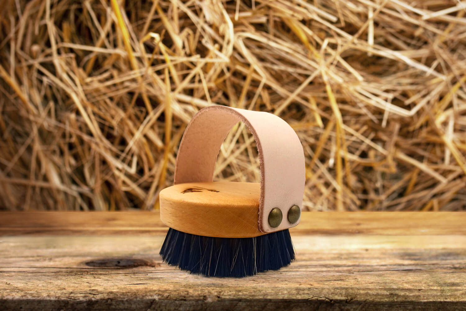 Der Griff der Kopfbürste selbst besteht aus geöltem Buchenholz aus nachhaltiger Forst- oder Waldwirtschaft aus dem Schwarzwald. Dieses einzigartige Holz kommt stets dort zum Einsatz, wo unverfälschte Qualität gefragt ist. Der besondere Vorteil dabei besteht in seinem natürlichen Schutz. Da es geölt wurde, bleibt es atmungsaktiv und wirkt wirksamer gegen Schmutz und Staub. Ebenso ist es wasserabweisend. Die Handschlaufe besteht aus pflanzlich gegerbtem Leder. Je länger die Bürste verwendet wird, umso schöner verfärbt es sich, da das Leder ungefärbt ist.